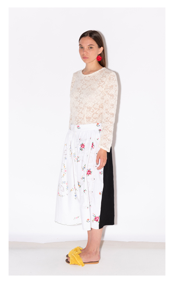 So it shows, when we were sourcing and buying old T-shirts and hand-embroidered tablecloths, whose real life was actually over and transformed them, brought them to a Second life by breaking them up and putting them together into something New.