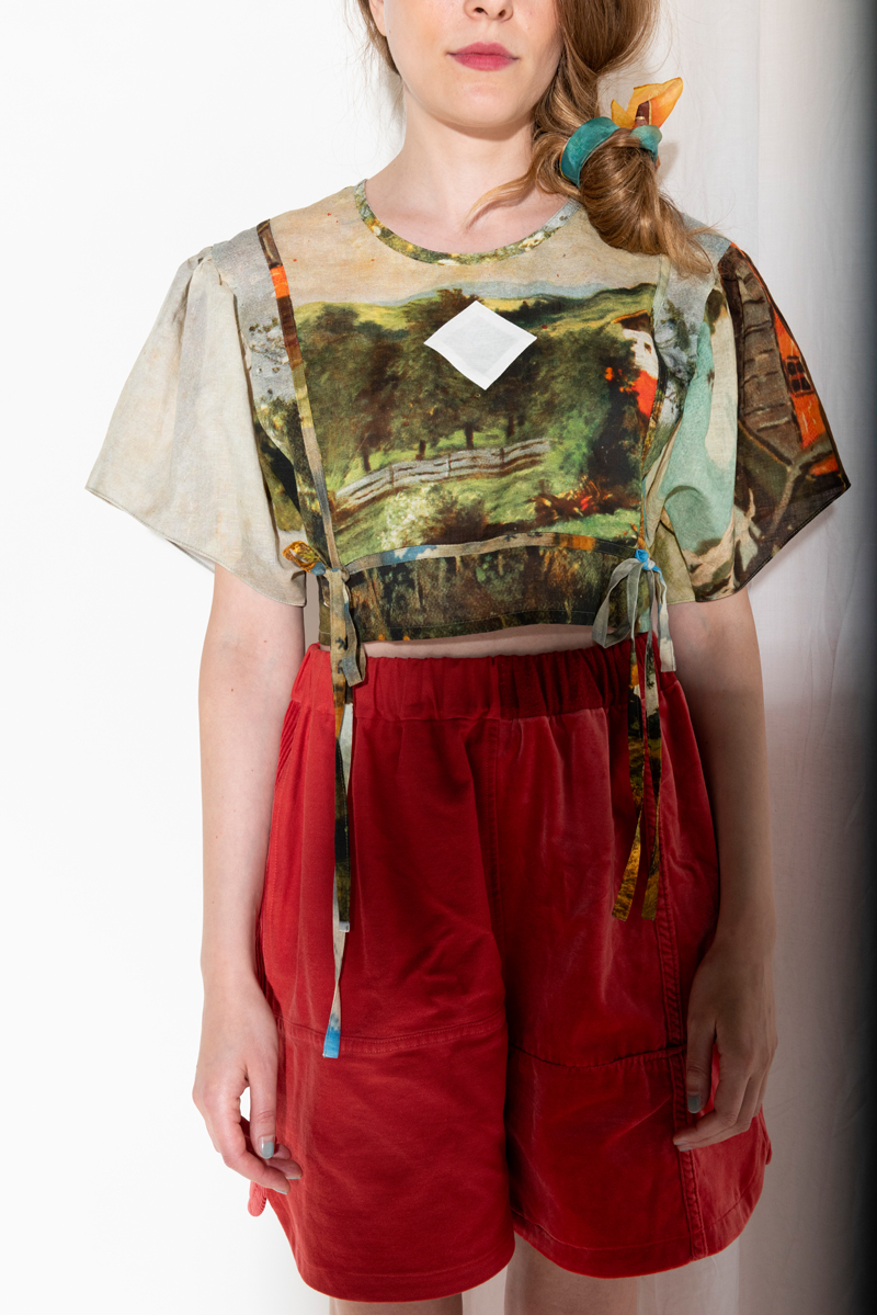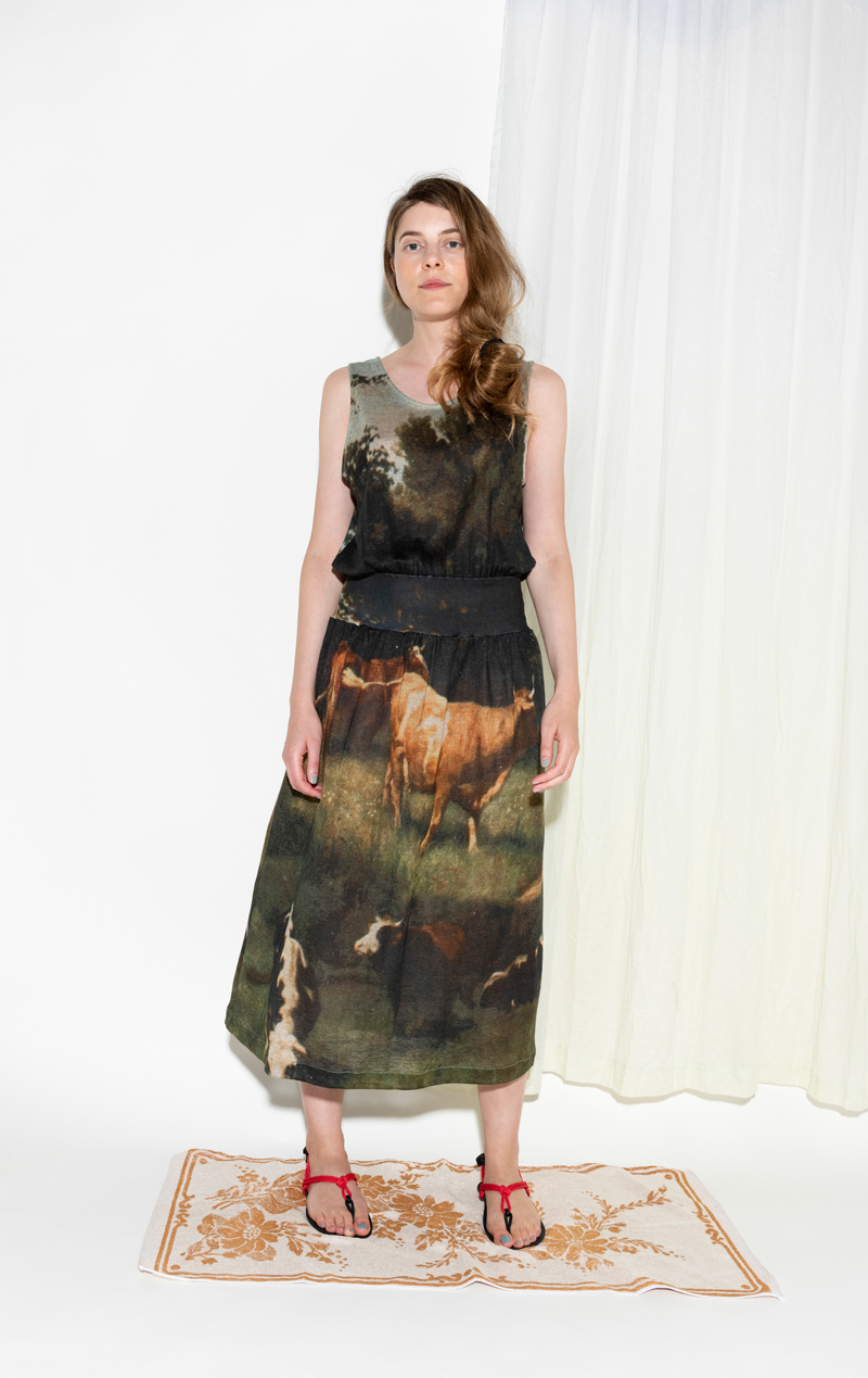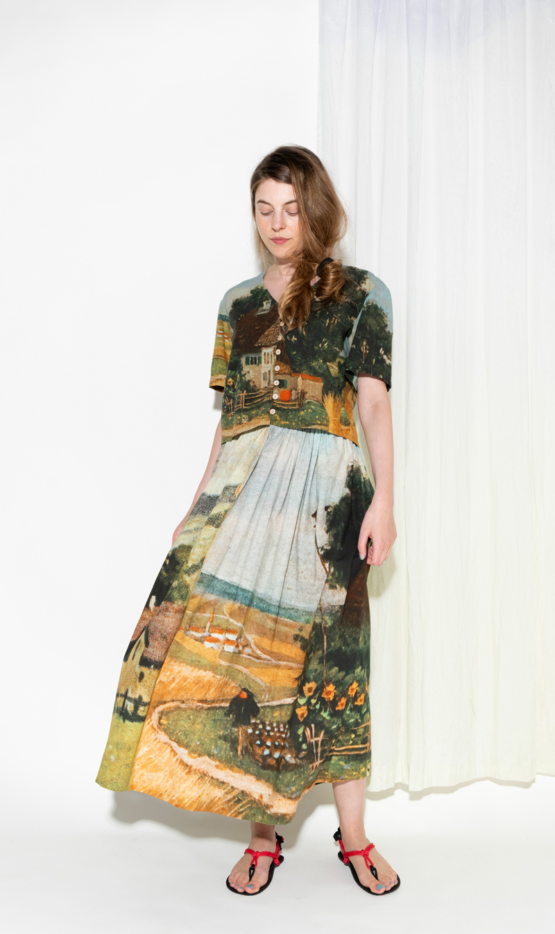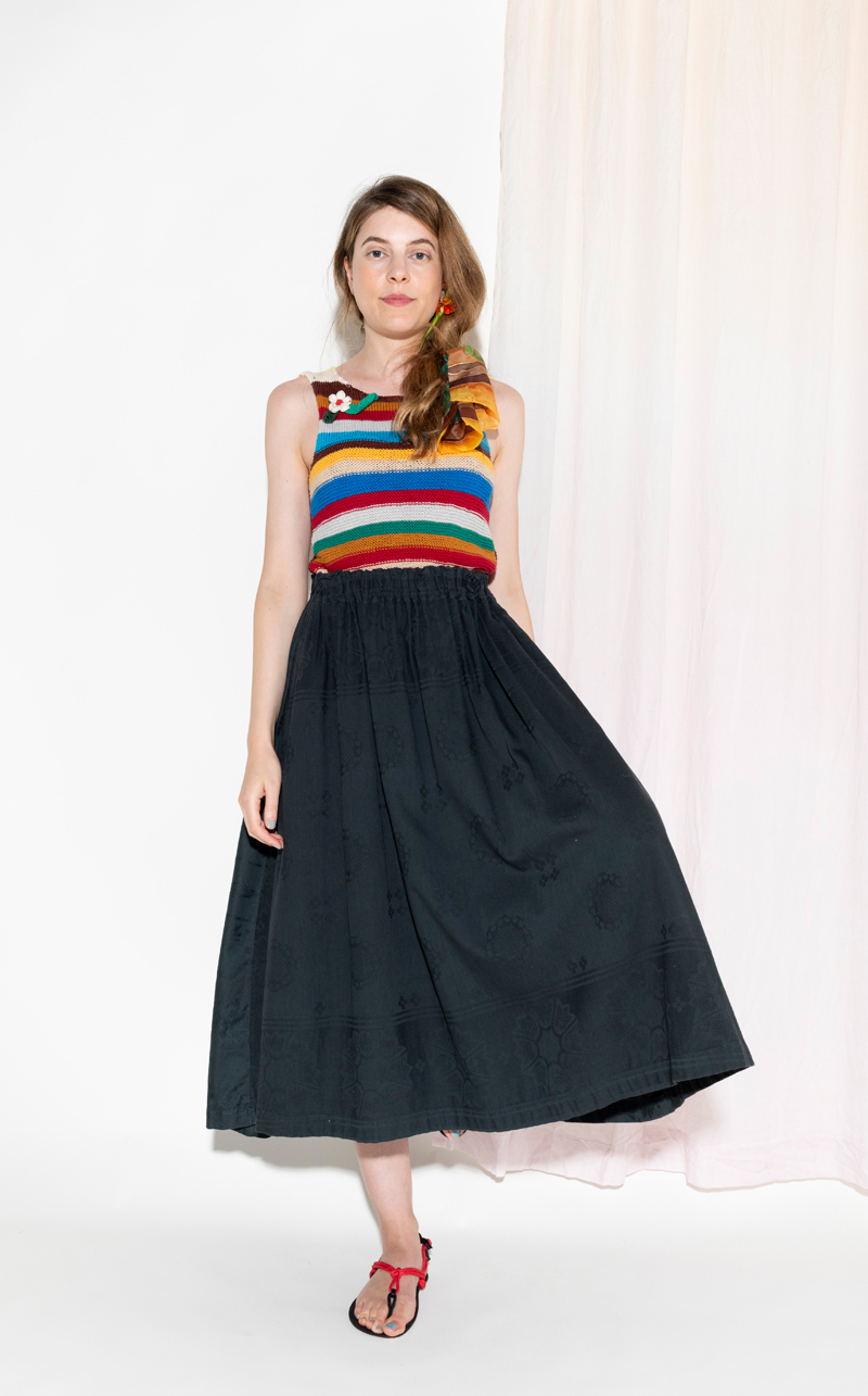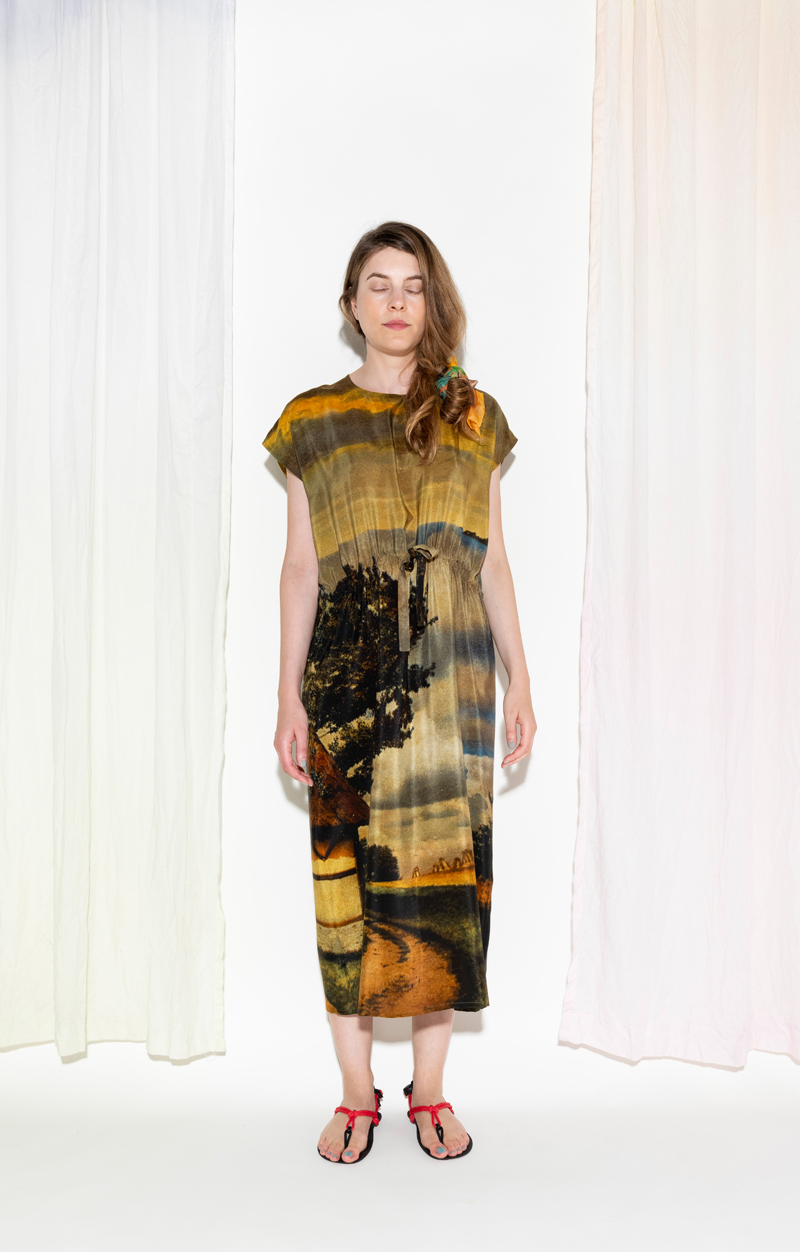 Within the Line we’ve been working on historic folk silhouettes that we interpreted in combination with modern, pure, comfortable and easy patterns. The materials show entirely natural fibres, with haptics that we see as modern and nice wear. Details: hand-embroidery, a new Natural Plisse Fabric combining cotton and silk. Including the ongoing Upcycling Project Materials, we’re proud to present a sequence of natural flower bundle-dyed items. Furthermore we’ve been using bio degradable Tencel yarn for most dyed items.