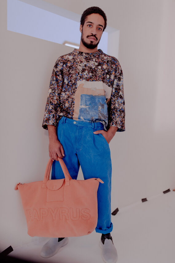 Over the last year ANNTIAN has been picking flowers, petals, leaves and blades of grass from their garden. Assembled old- aged, unused papers and (love)letters. For AW18 season ANNTIAN has transformed these finds into new handmade paper sheets - Papyruses with no text inscribed on them, but all still carrying the story of the found flowers and writings.
