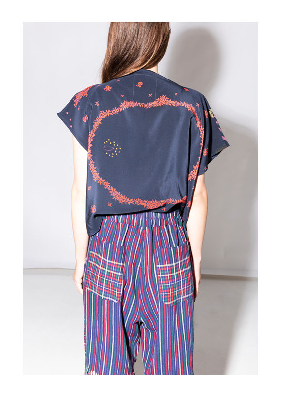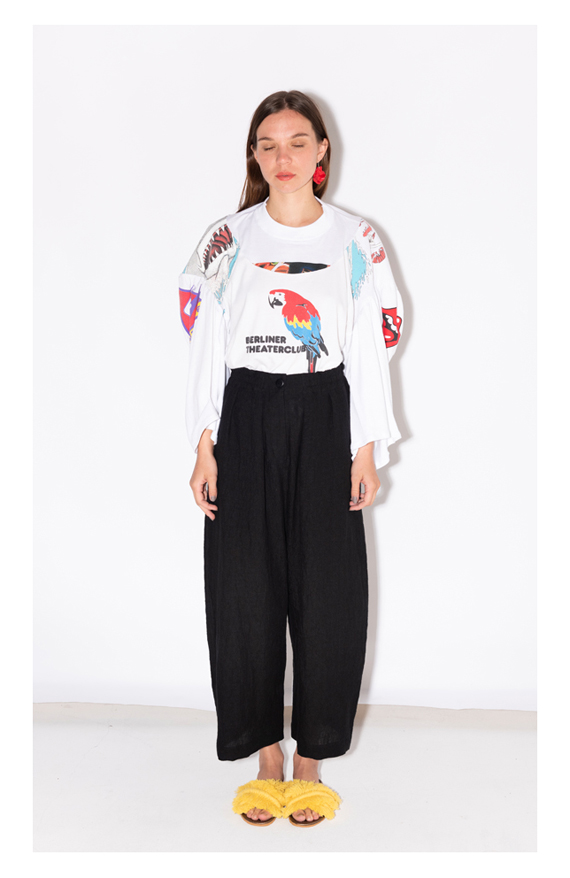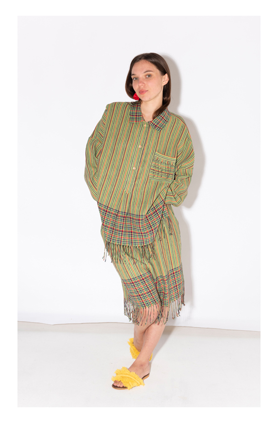So it shows, when we were sourcing and buying old T-shirts and hand-embroidered tablecloths, whose real life was actually over and transformed them, brought them to a Second life by breaking them up and putting them together into something New.