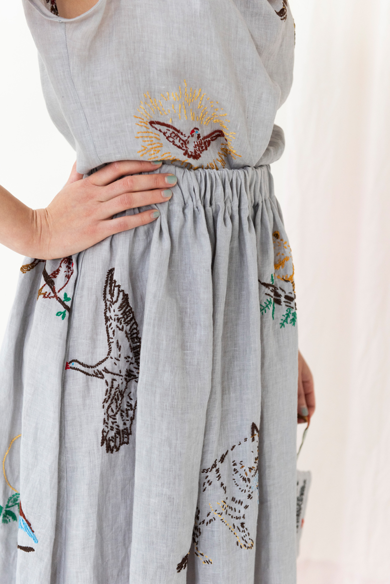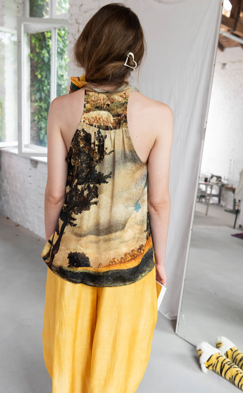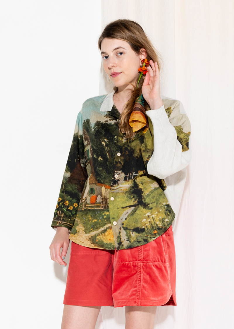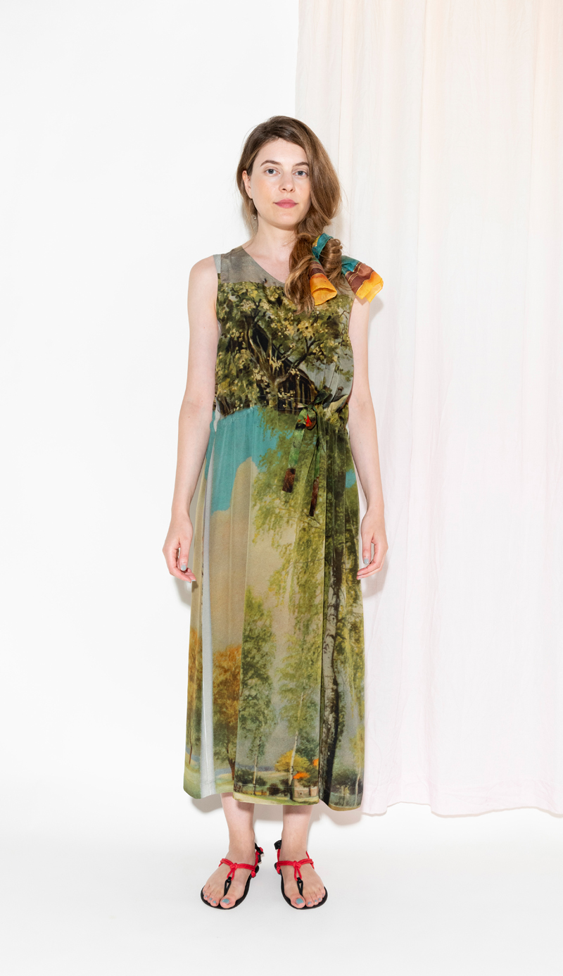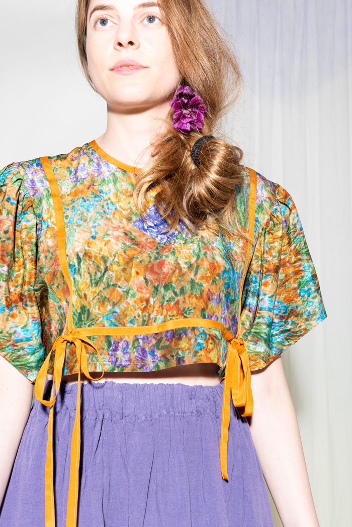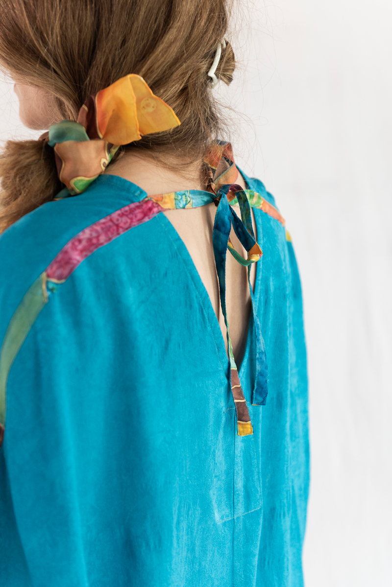 Within the Line we’ve been working on historic folk silhouettes that we interpreted in combination with modern, pure, comfortable and easy patterns. The materials show entirely natural fibres, with haptics that we see as modern and nice wear. Details: hand-embroidery, a new Natural Plisse Fabric combining cotton and silk. Including the ongoing Upcycling Project Materials, we’re proud to present a sequence of natural flower bundle-dyed items. Furthermore we’ve been using bio degradable Tencel yarn for most dyed items.