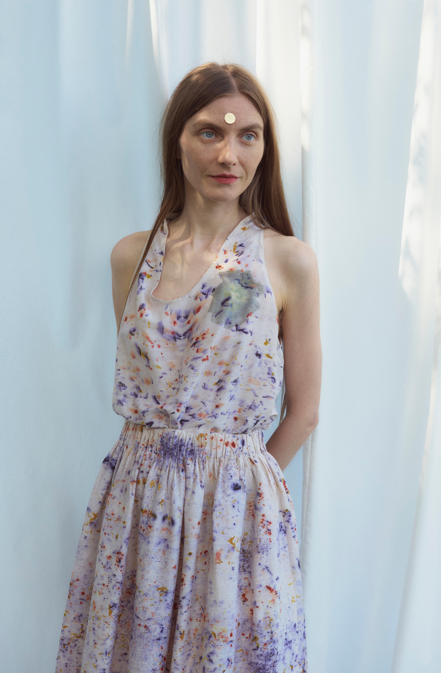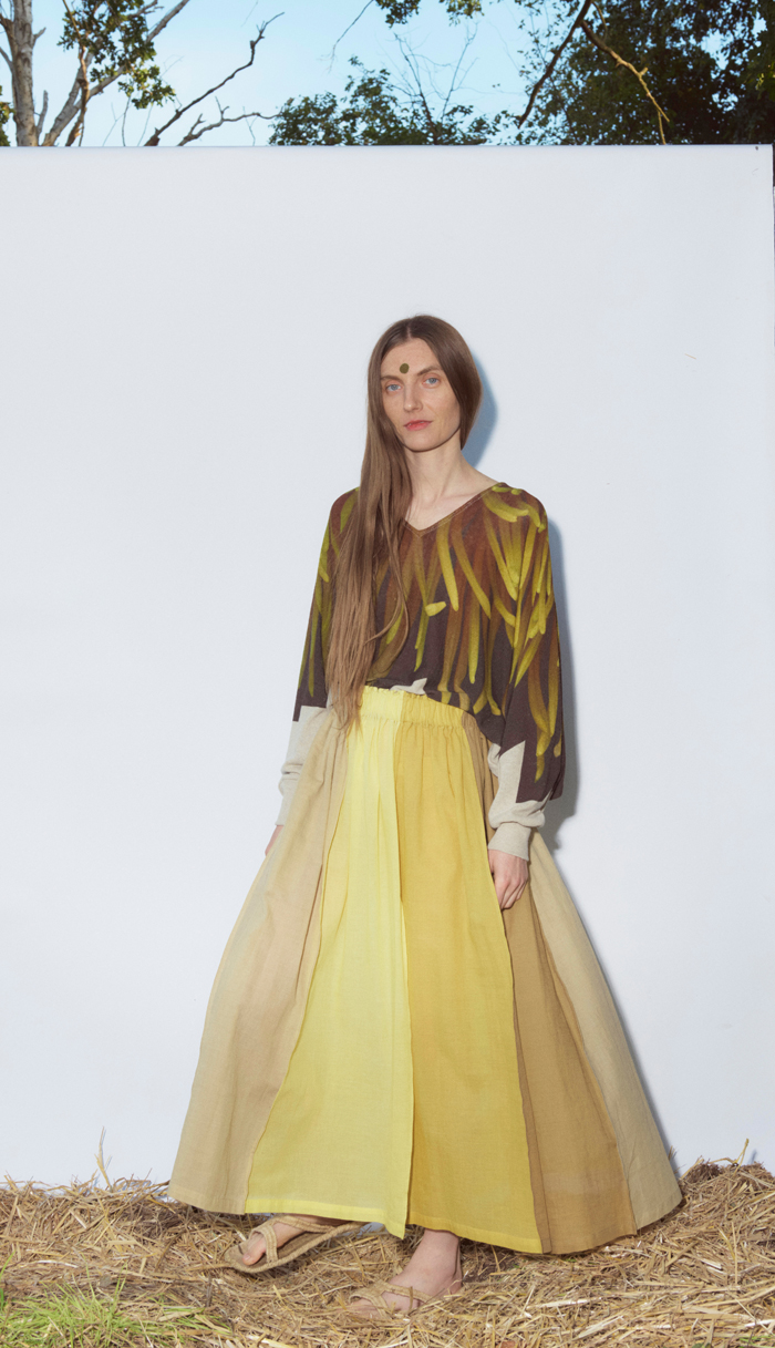 Plant dye , eco-printing, mirroring and reflection are other elements of the collection.