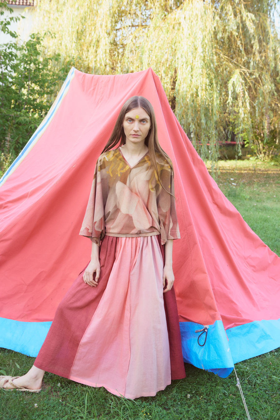 The silhouettes are predominantly soft, light, flowing and simple - some inspired by the shape of "tent bodies" and developed accordingly.